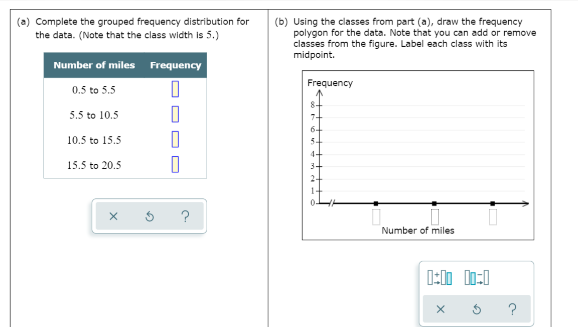 In a frequency distribution class width refers to the difference between the upper and lower boundaries of any class or category. Simplify to find that the class width is 3. Click on the Reset button to clear the fields and find the cumulative frequency for different data sets.